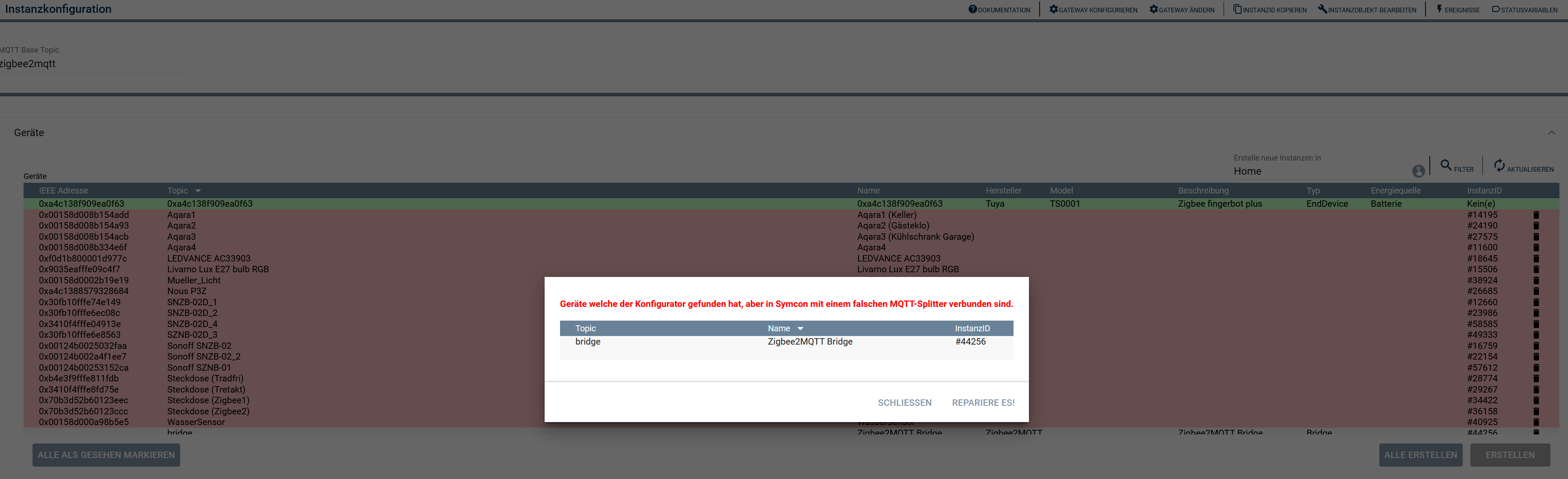 Der Konfigurator sieht dann, dass es gleiches BaseTopics (für ihn also die gleiche Z2M Installation) an verschiedenen MQTT Servern gibt, und will das reparieren. Weil gleiches BaseTopic heißt halt, gleiche Z2M Installation.