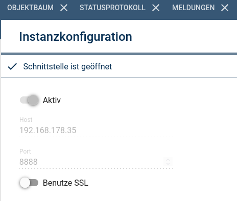 Auffällig ist noch das im ClientSocket der Schalter für das Aktivieren der Instanz in Grau auf “Aktiv” steht, sich aber nicht bedienen lässt!