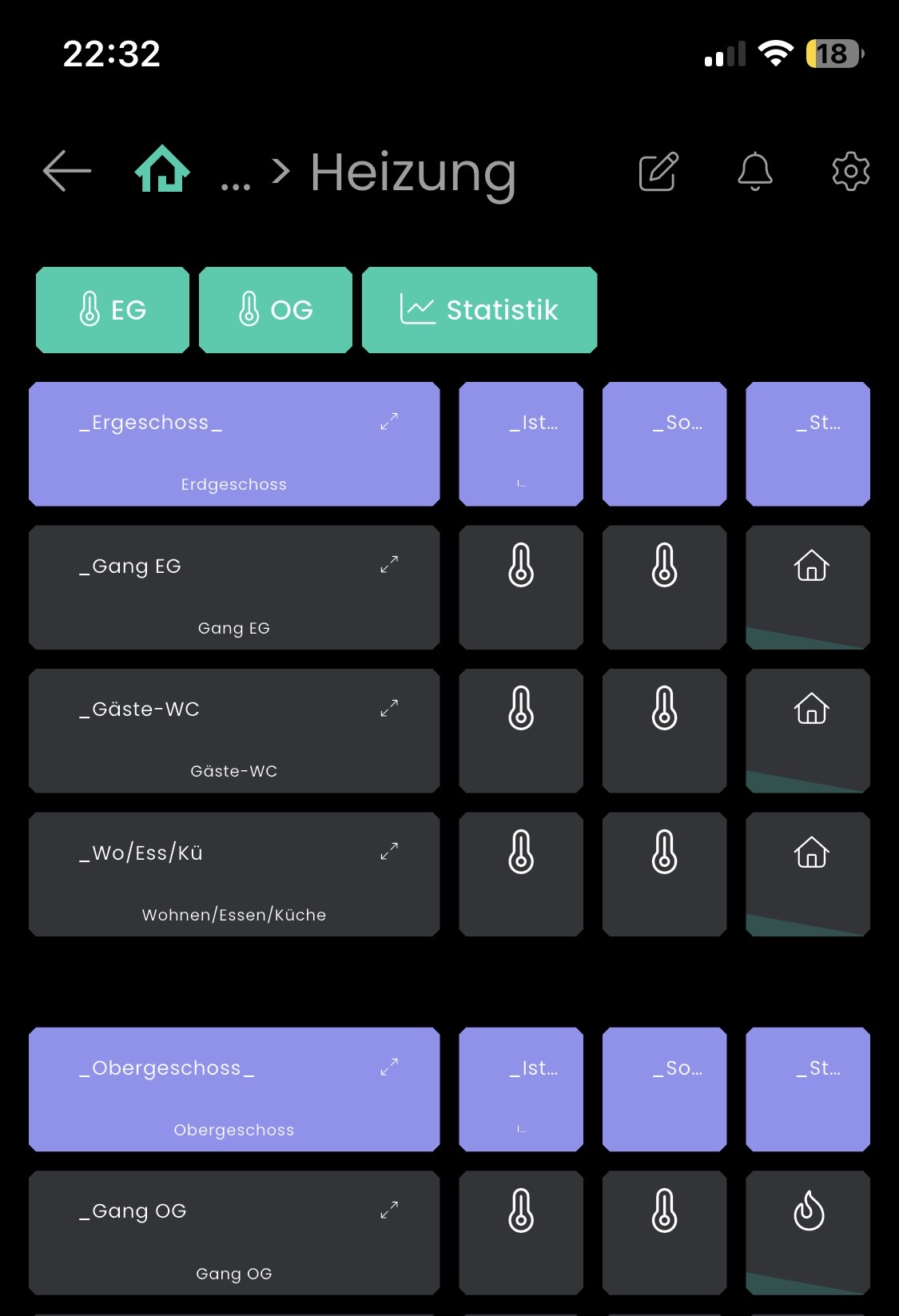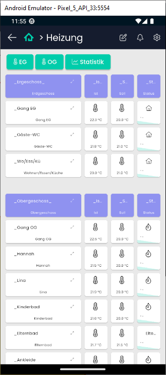 Hab leider keinen Screenshot von der alten Darstellung, aber im ersten Bild standen in den Spalten 2/3 (ist/soll) die entsprechenden Temperaturwerte. In Bild 2 in der zweiten Spalte %-Wert des Rollladen-Status sowie in Spalte drei das Symbol des Links.