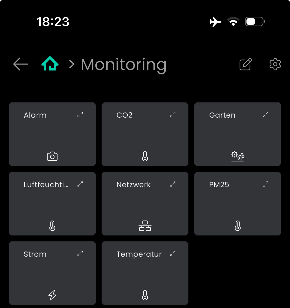 Sieht so aus als ob die Skalierungslogik für die Icons bzw irgendein Padding am oberen Rand bei kleinen Kacheln überhaupt nicht ordentlich funktioniert… aber allgemein hängen die Icons auch bei grösseren Kacheln jetzt anscheinend immer merkwürdig weit unten, und die verhältnisse bleiben recht ähnlich. Texte sind imo nicht das Problem, sieht man ja auf meinem Bild… auch „CO2“ etc ist betroffen.