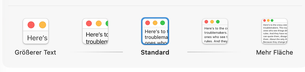 Bei Apple sehen die Texteinstellungen so aus. Ich denke die haben sich auch etwas dabei gedacht dies nicht Pixelgenau einstellbar zu machen, sondern passende Vorgaben anzubieten.