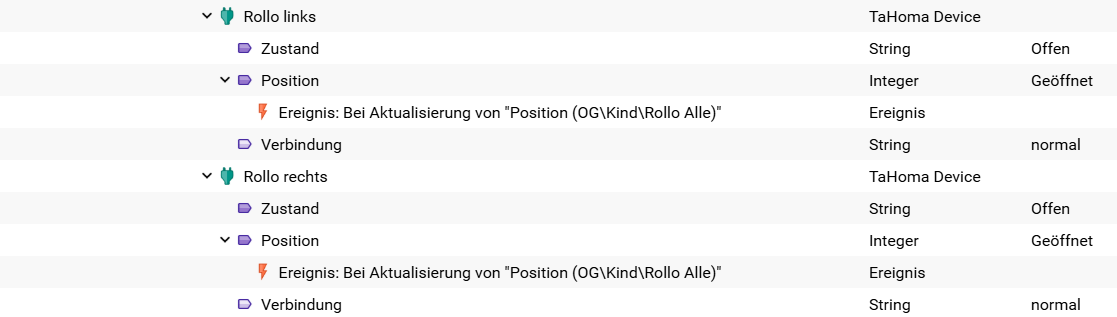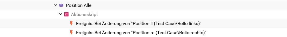 Okay. Also ich habe in einem Raum 2 Rollos, die ich über TaHoma eingebunden habe. Nun habe ich mir zusätzlich eine Dummy Instanz angelegt mit der ich auch beide Rollos zusammen fahren kann. Jetzt hat mir aber nicht gefallen, dass sich der Value von Rollo Alle nicht ändert, wenn die Rollos einzeln gefahren werden. Daher möchte ich bei einer Änderung von Position Rollo links/rechts ein Skript aufrufen, welches mir den Mittelwert der beiden Rollos berechnet und diesen dann mit SetValue() an die Variable Rollo Alle übergibt. Aktuell rufe ich das Skript mit 2 Ereignissen auf und nun war die Überlegung, ob ich es nicht direkt durch die Aktion der einzel-Rollos aufrufen kann.