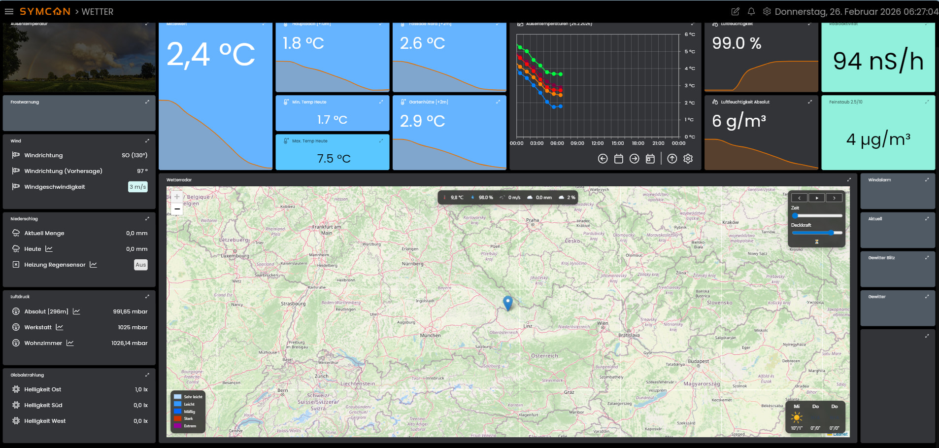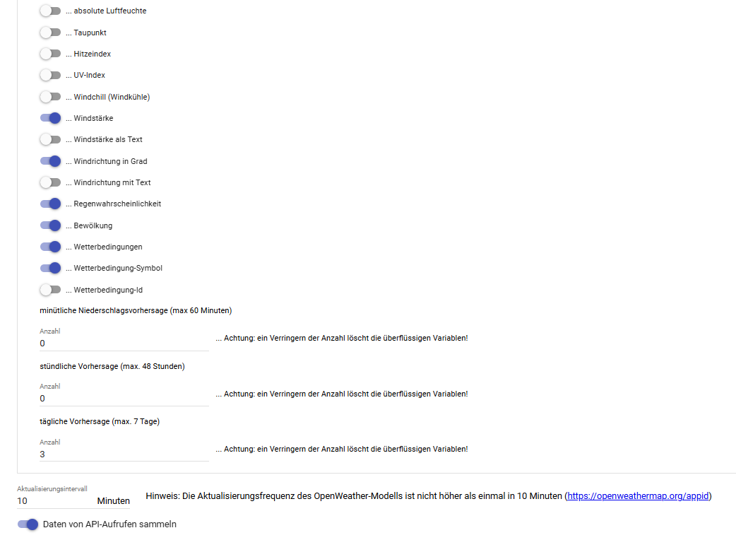 // Damit die Wettervorhersage funktioniert, ist eine Anbindung an das Openweathermap-Modul (OpenWeaterOneCall) von @demel42 nötig und die Location ist im Modul zu konfigurieren.