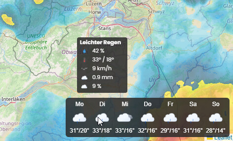Die Vorhersage hat noch nette Tooltips beim drüber hoovern