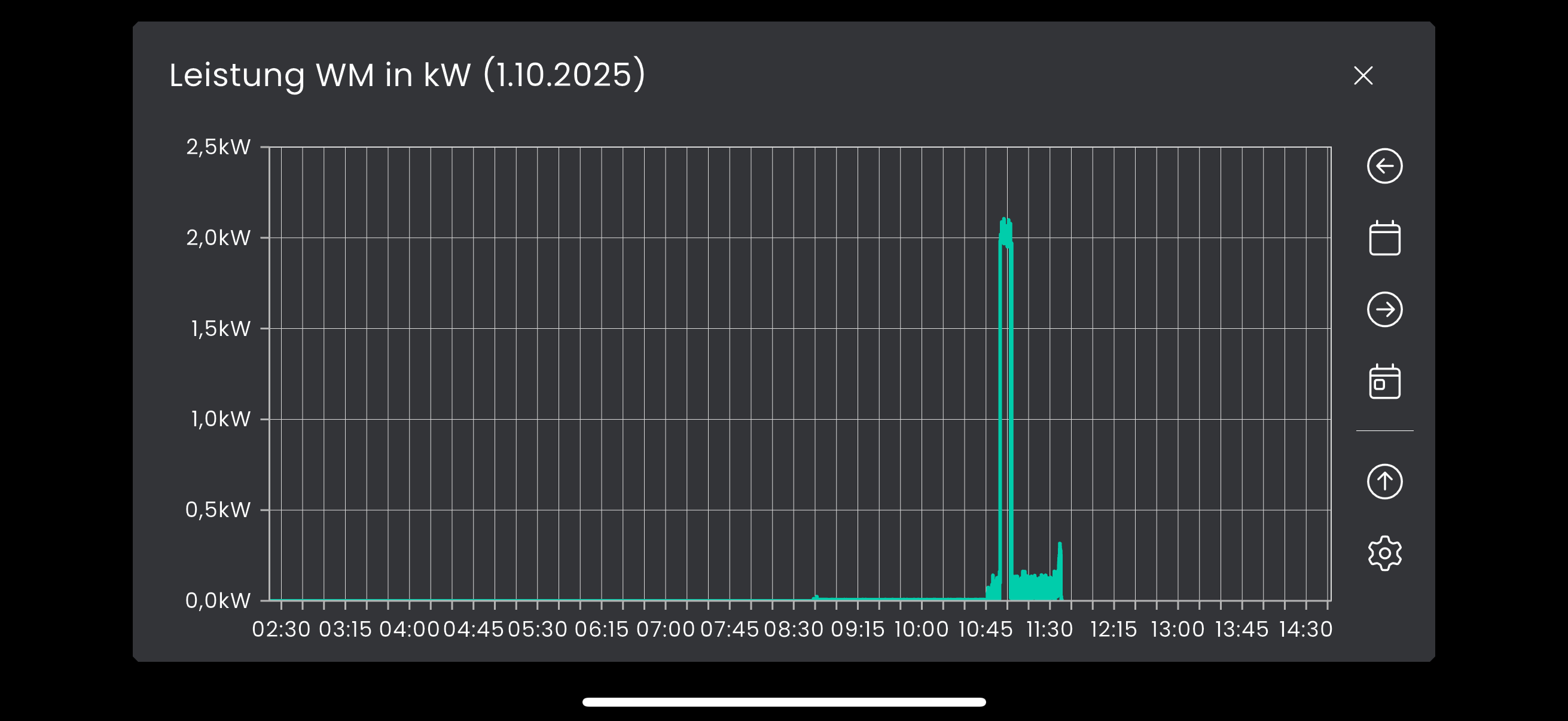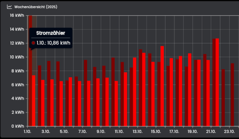 Wie man schön sieht am 1.10. ist der Balken bei 16kWh (max der Achse), aber er zeigt ihn als Tooltip korrekt mit 10,88 an! Sehr merkwürdig!