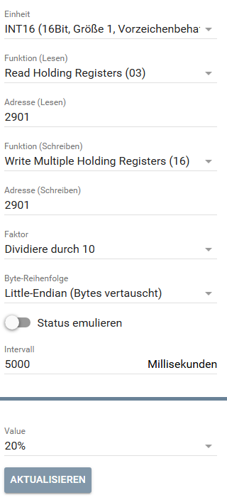 Da ich Null Kenntnisse in Sachen Modbus habe, möchte ich herausbekommen ob alles auf meiner Seite richtig ist.