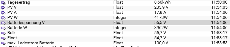Nun kann man alle Daten ohne Cloud direkt vom Solax verwenden und für den Energieverteiler oder sonstwas weiterverarbeiten. Einzelne Registererstellung nun nicht mehr notwendig. Die Arbeit hat Symcon durch die Möglichkeir von Export/Import der JSON Files erheblich erleichtert und ich hatte nur noch das Vergnügen diese zu erstellen als erstes
