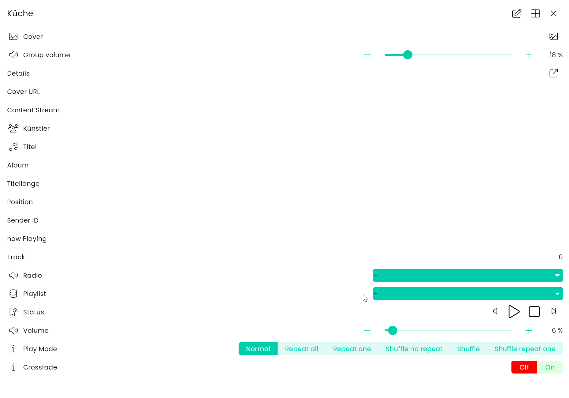 Ich weiß nicht obs 100% hier passt, aber wie stellt ihr das Sonos Modul sauber und ansprechbar in der Tile Visu dar? Hat da mal jemand einen Screenshot oder einen Tipp für mich. Mit dem Mediaplayer dürfte es ja nicht ganz sauber funktionieren, da ich direkt in der Kachel nicht die Sender wechseln kann. Mir gefällt auch der Volome Schieber nicht, das ist auf einem Tablet nicht schön zu bedienen wenn man nicht zusätzlich +/- Tasten hat.