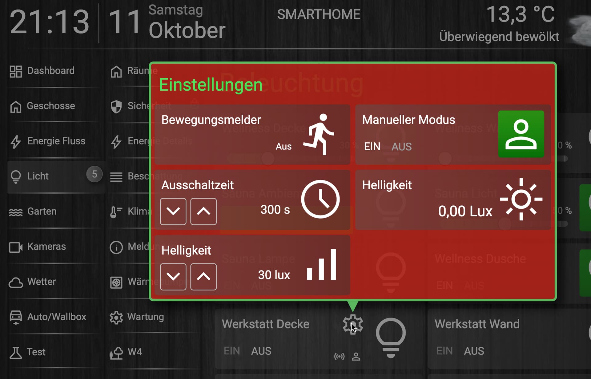 Dann bekomme ich tatsächlich mein Popoup in der gewünschten Farbe. Bisher dachte ich, dass die Transparenz im Popup nicht funktioniert, tut sie doch. Wenn ich jedoch ein Steuerelement dort platziere (z.B. ein Circle Slider, ein Assoziation Image und ein VarLabel - zu finden im Steuerelement „Dimmer“), das keine Hintergrundfarbe besitzt - also eigentlich transparent ist, so ist dennoch in dem Popup der durch das Steuerelement belegte Bereich nicht transparent.