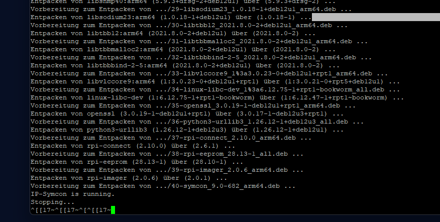 Leider hat es mit deiner Anleitung auch nicht geklappt. Ich habe es dann mit sudo apt-get install symcon probiert und folgende Meldungen erhalten: