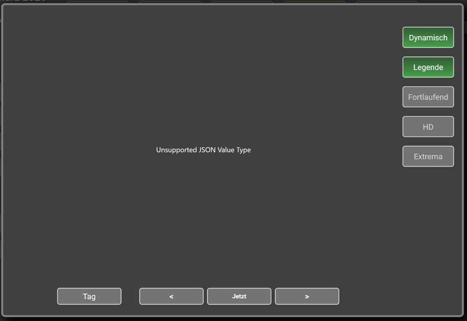 1. Darstellung Schalter, keine Vorlage möglich: Fehler, Unsupported json value type (-32603)
