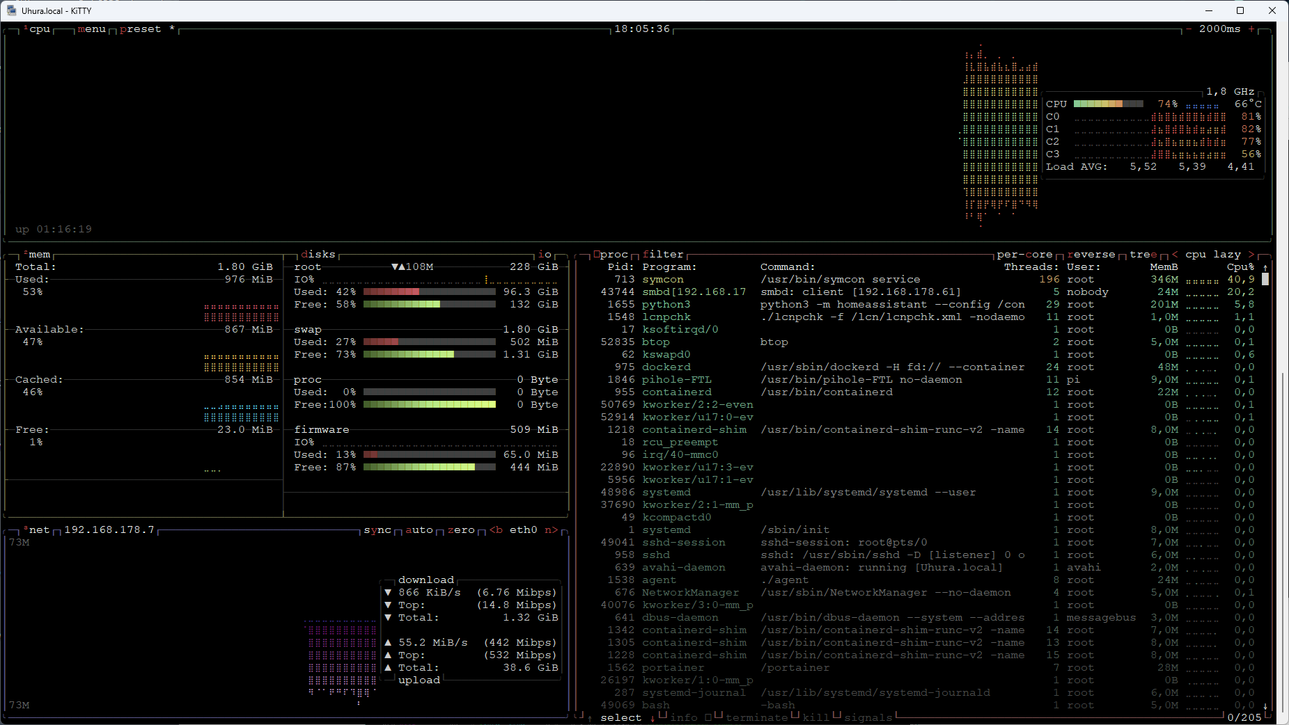 Symcon + Pihole bei 316MB RAM (von 1GB) und eine Prozessorlast von <0,3