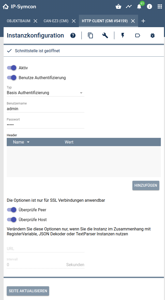 Ich habe eine CMI-S von der Technischen Alternative per LAN mit fester IP-Adresse in meinem LAN. Das Web-Interface dieser CMI-S kann ich erreichen. Es hängt am CAN-Bus-Knoten 56 (default).