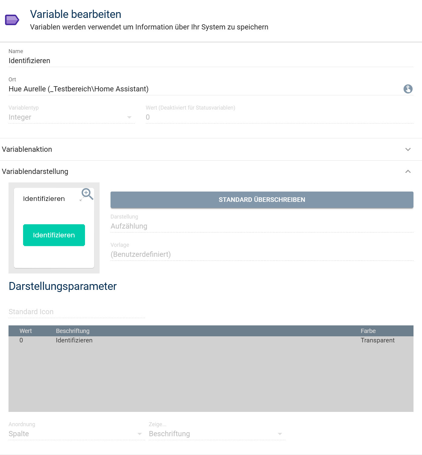 Dann gibt es jetzt die Matter-Geräte, die z.B. ein Identify unterstützen. Auch die Aktion fehlt bei den Instanzvariablen, das es dafür keine Darstellungsform gibt.