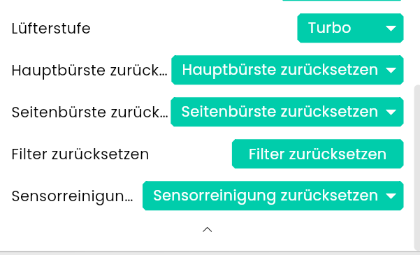 Die Lüfterstufe ist korrekt mit mehreren Optionen. Die anderen vier sollen aber Aktionsbuttons darstellen. Man erkennt sie aber nicht als solche und fragt sich, ob die Buttons sofort die Aktion auslösen (was gewollt wäre) oder ob man hier zweimal betätigen muss.