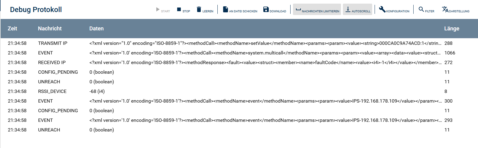 Im Debug von der Homematic Konfigurator steht folgendes.