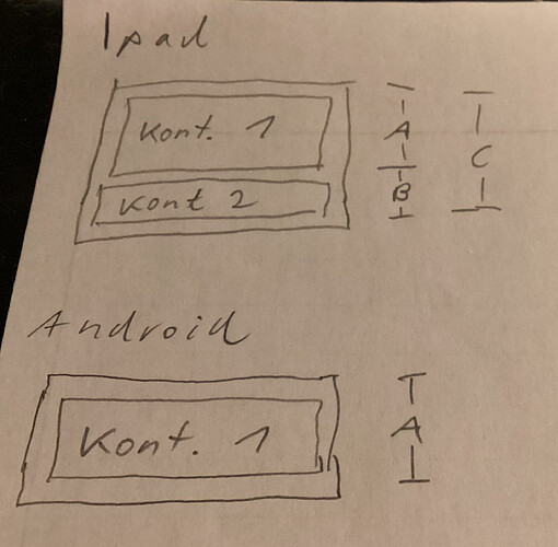 Der Kontainer 2 (Höhe B) soll nur auf dem Ipad erscheinen (1080*200).