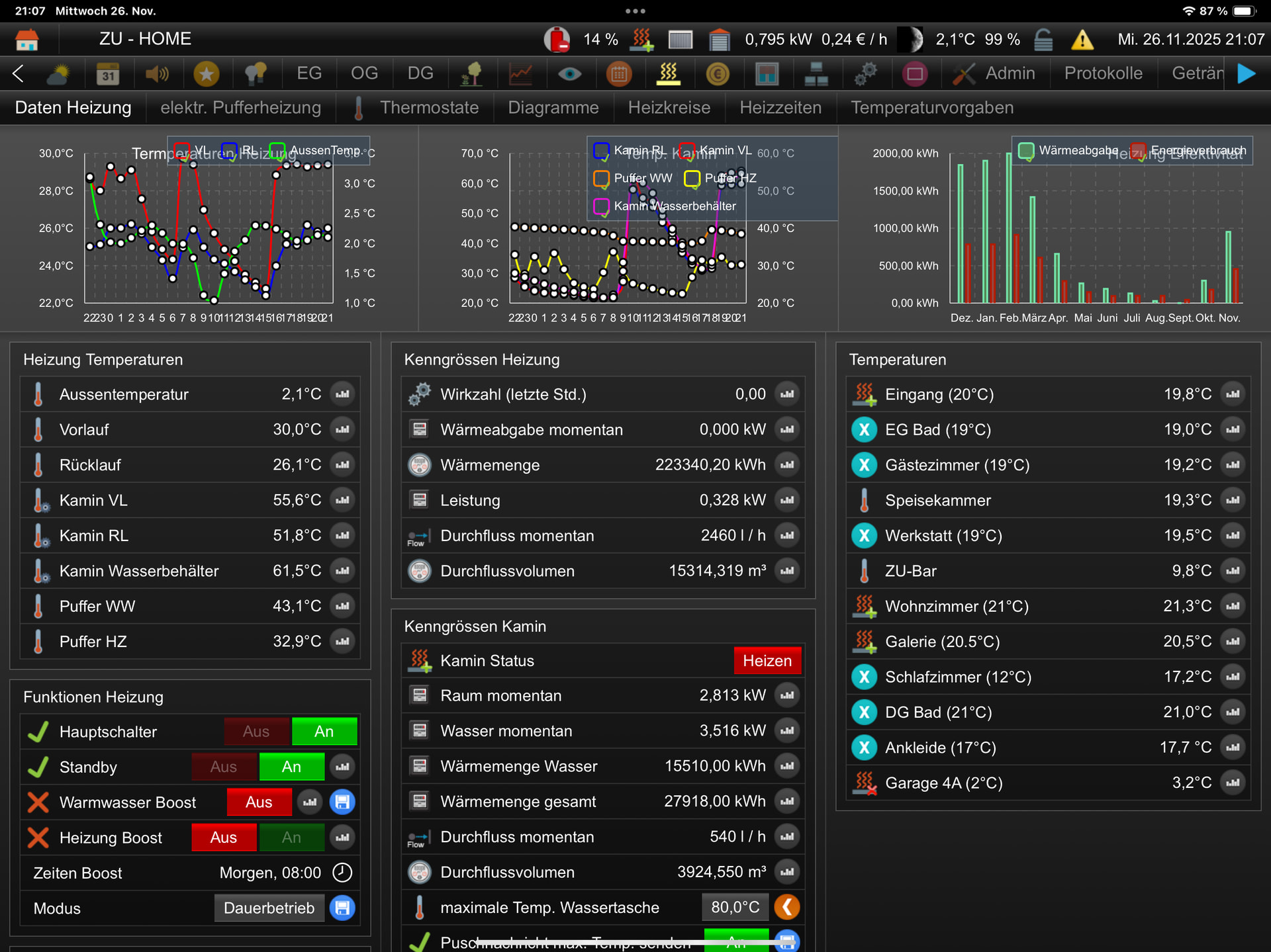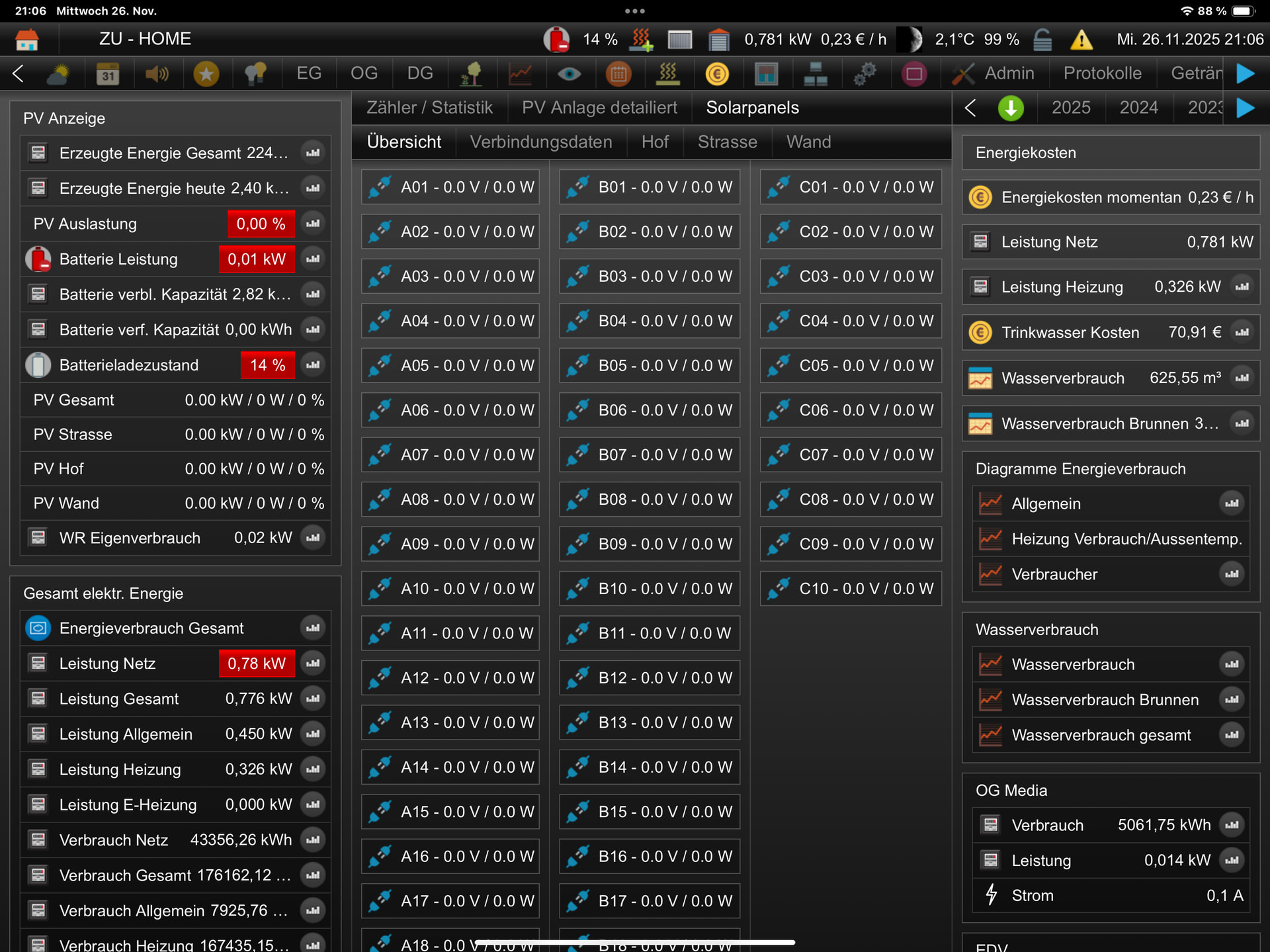 Genau die Info Widgets. Du siehst doch auf meinen Screenshots was ich alles schnell sehe. Aussentemperatur, Ladezustand Batterie, Leistung Netz, Bewegung im Haus….