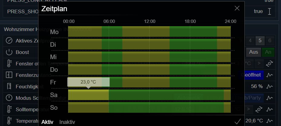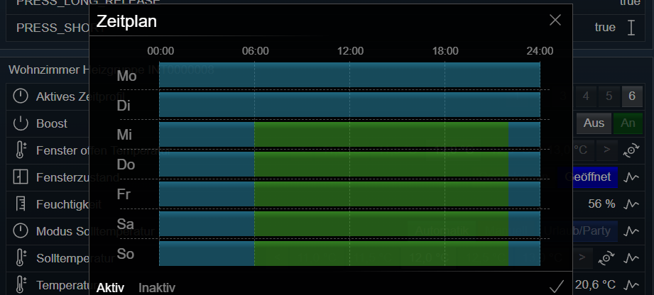 Beim ändern des aktiven Zeitprofiles wird der Wochenplan geändert und in der Symcon-Visu auch korrekt angezeigt.