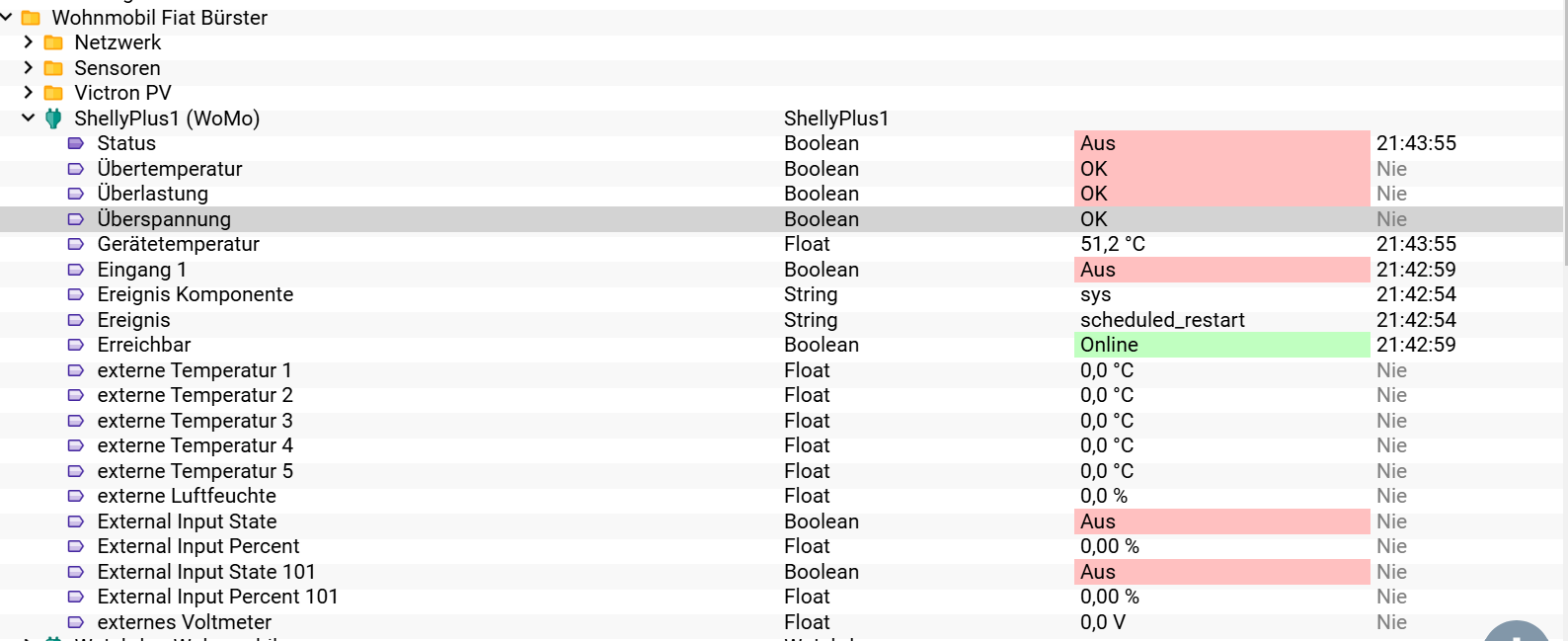 ich habe mir jetzt Shelly geholt. Er ist im WLAN vom WoMo und ist per VPN am IP-Symcon angebunden.
