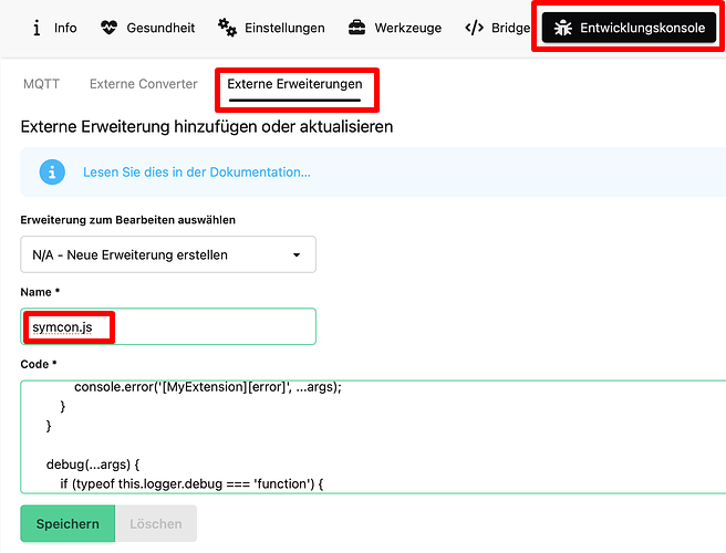 P.S. Nach einem update von z2m habe ich die Extensions gefunden. Sind unter “Entwicklungskonsole”. Keine Ahnung, ob ich gestern blind war oder es durch das z2m update kam.